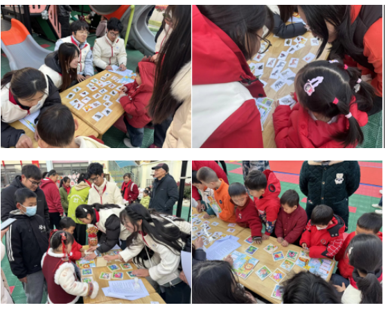 活动伊始,志愿者以生动语言引入主题,通过彩色科普手册、专属闯关卡点燃孩子们的探索热情。活动设置“火眼金睛”“亲子生物拼图”两大趣味摊位,紧扣“玩中学”核心。“火眼金睛”环节中,孩子们通过辨认动植物卡片、模仿动物动作学习知识,志愿者同步讲解物种习性;“亲子生物拼图”环节则以萌宠图案为载体,让家长与孩子协作完成拼图,志愿者结合趣味问题科普生物知识,在互动中深化亲子感情,践行“小孝敬亲”理念。